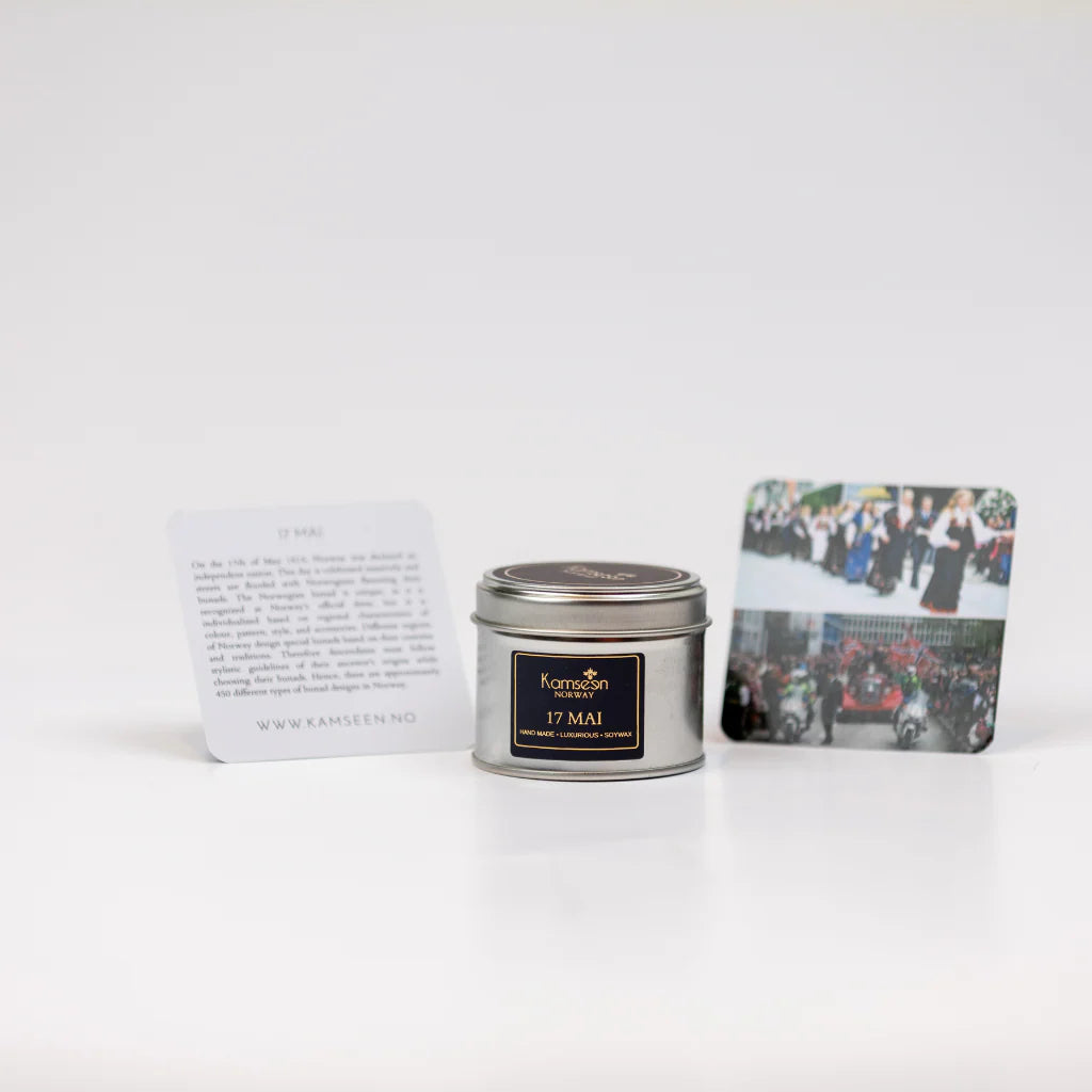 17th Mai ist ein luxuriöser, eleganter Duft, inspiriert vom norwegischen Nationalfeiertag. Die Mischung wirkt edel, warm und leicht gourmand – perfekt für besondere Anlässe oder als hochwertige Geschenkkerze.